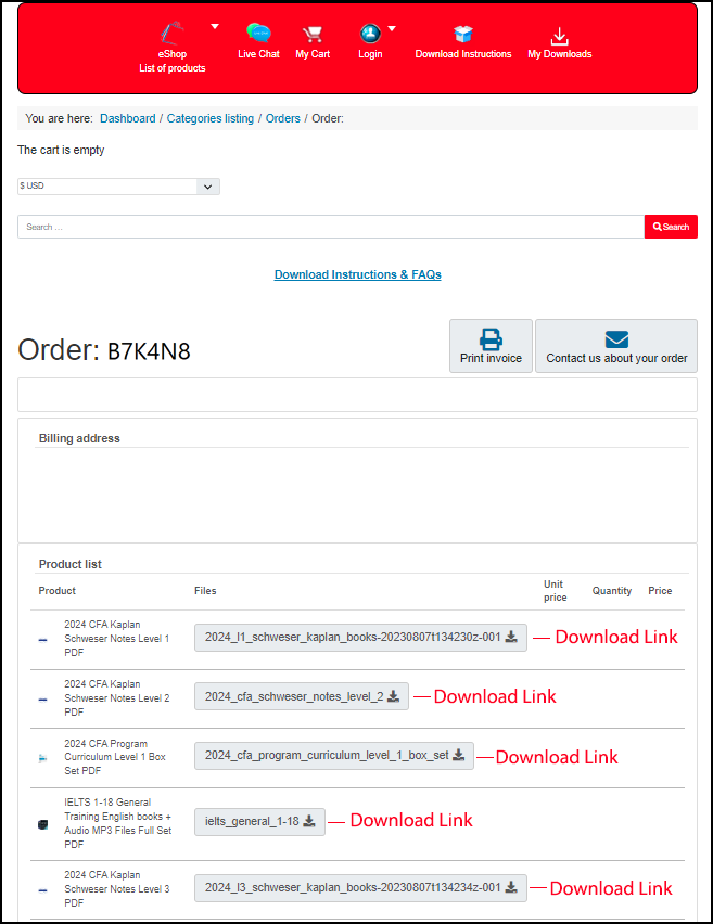 - After successful payment you can see all of your downloads available on the Order Confirmation Page, through your Email (You will be sent download links to your files - check your junk/spam mailbox too) and in My Downloads. See sample images below.