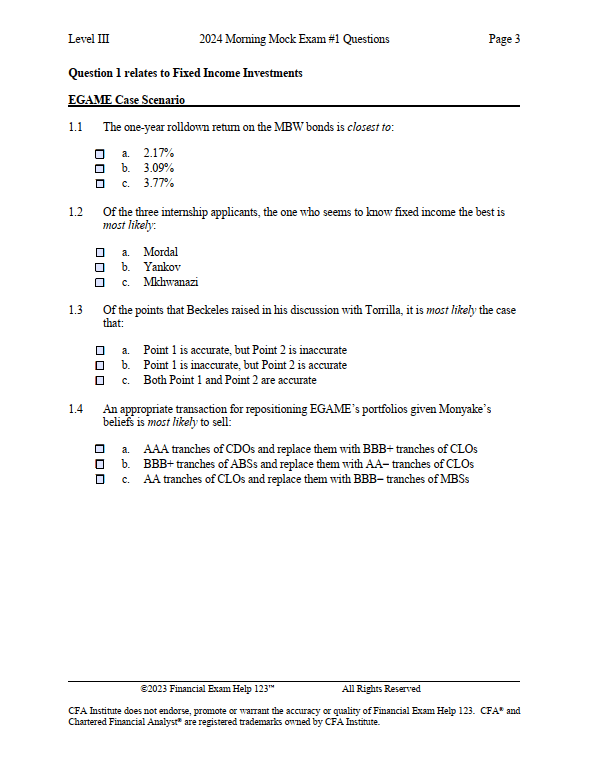 For sale is an e-Book CFA Level 3 Bill Campbell Mock Exam 2024