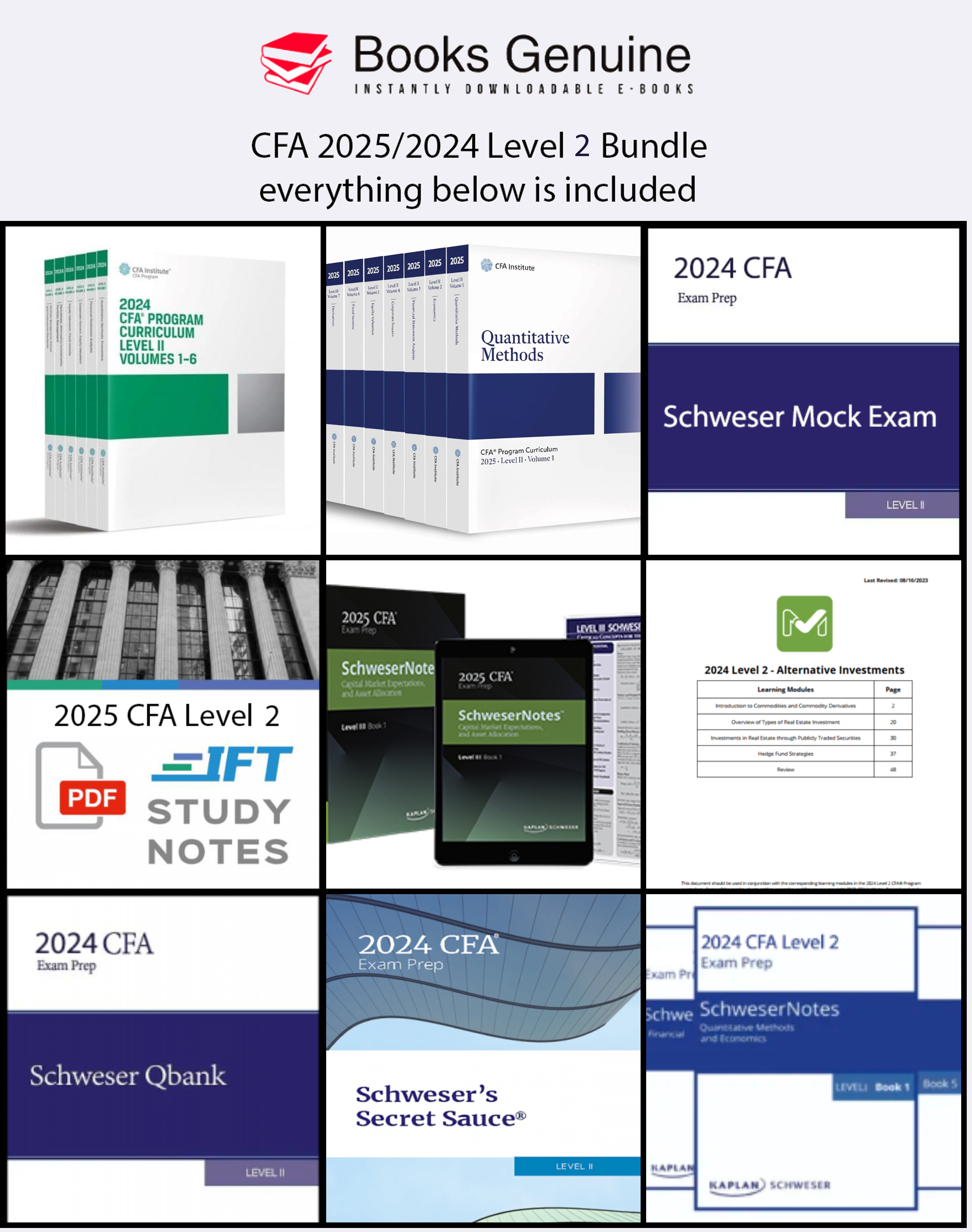 For sale is a Bundle including the 2025 and 2024 CFA Level 2 material listed below. You can click each link to see more samples of each product. You will get everything listed below for only $39.99 USD or equivalent in your chosen currency.