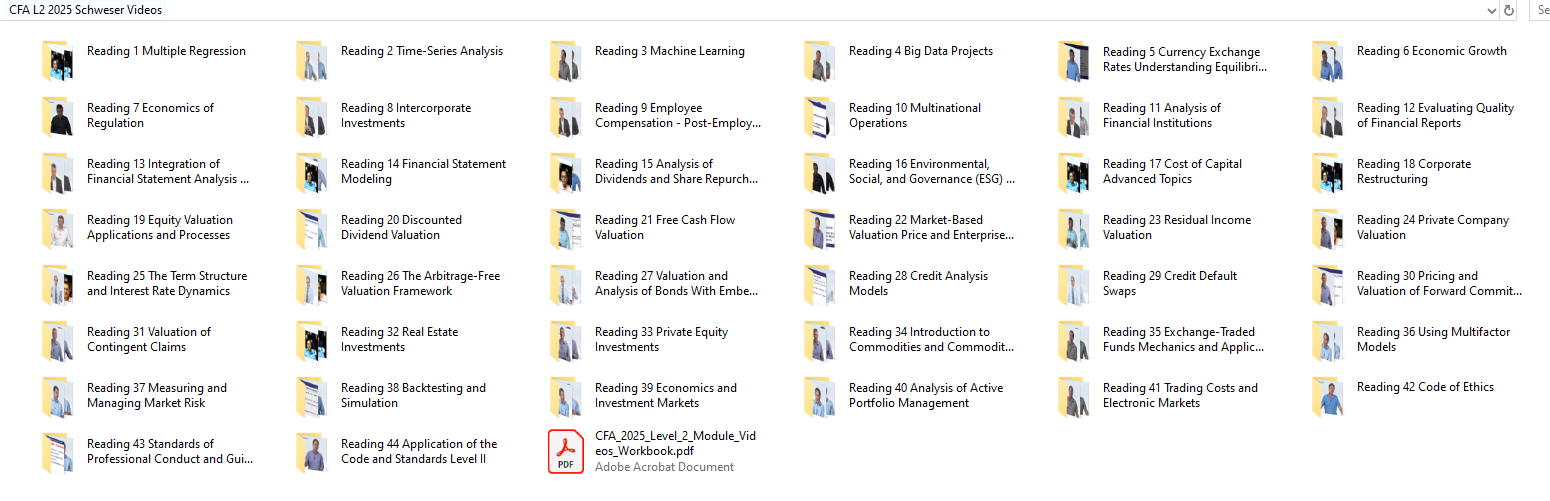 - CFA 2025 Schweser Video Lectures Level 2 + PDF Workbook (PPT)