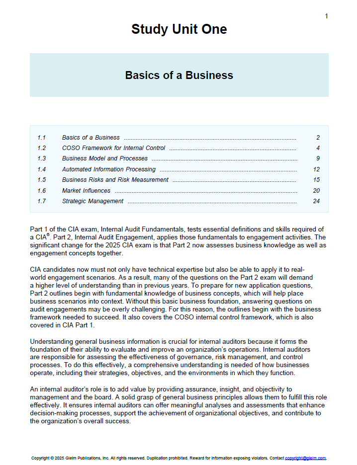 For sale is the Gleim CIA 2025 Part 2 Digital Study Guide