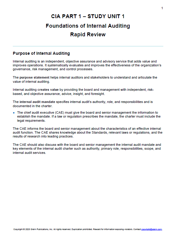 CIA 2025 Part 1 Gleim Rapid Review, CIA Part 1 quick review guide, Gleim CIA 2025 summary notes, CIA Part 1 foundations of internal auditing, CIA 2025 exam revision Part 1, Certified Internal Auditor Part 1 fast track, CIA Part 1 formula sheet, CIA Part 1 condensed notes Gleim, CIA exam prep 2025 rapid review, Gleim CIA Part 1 study booster, CIA internal audit basics rapid notes, CIA Part 1 essentials PDF summary, Gleim Part 1 concise review guide, CIA 2025 high-yield notes Part 1, CIA Part 1 key concept guide, CIA 2025 audit terminology quick review, CIA Part 1 learning objectives flash guide, Gleim Part 1 quick reference manual, CIA 2025 Part 1 cheat sheet.