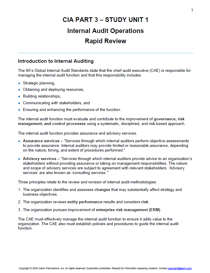 For sale is the CIA 2025 Gleim Part 3 Rapid Review