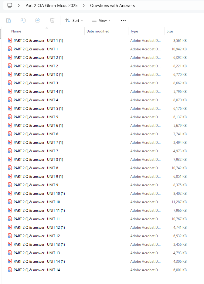 For sale is CIA 2025 Gleim Part 2 Multiple Choice Questions with Answers